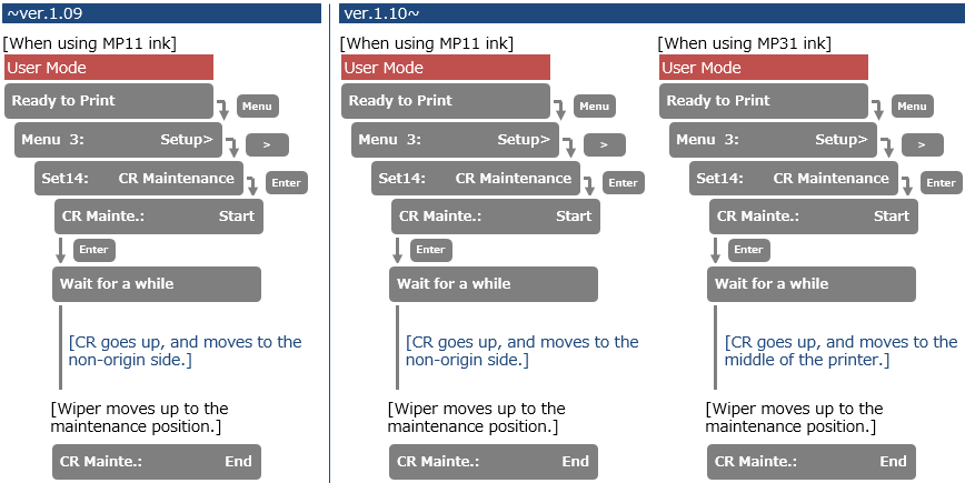 - Changed the printer behavior during the CR maintenance (Only when using MP31 inks)