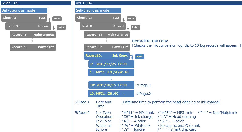 Added an ink-conversion log menu in diagnostics. The ink conversion log records when ink conversions have occurred