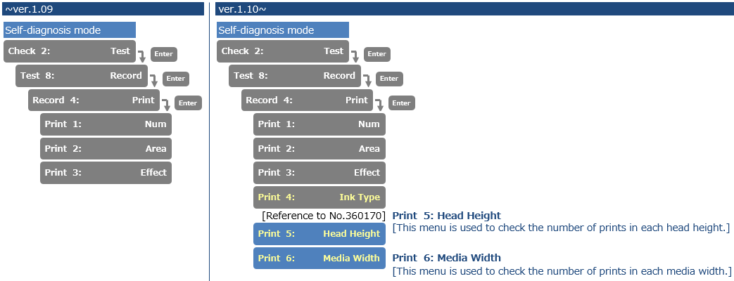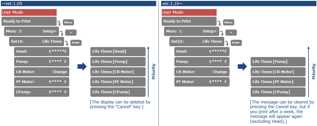 - Diagnostic menu: if “ink error” occurs during cleaning, no message was displayed, this is now