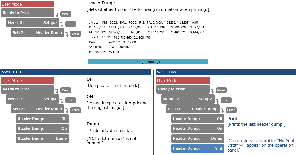 - Added "PRINT" menu in Header dump menu (User mode). The "PRINT" menu prints the last header dump
