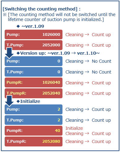 Changed the lifetime counting method for the suction pump. The lifetime of the suction pump has changed in units from 285 hours, to 28800 counts
