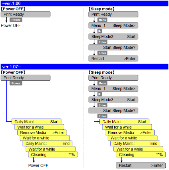 - Added daily maintenance function : when entering the sleep mode or turning off the printer, the menu automatically shifts to the daily maintenance menu