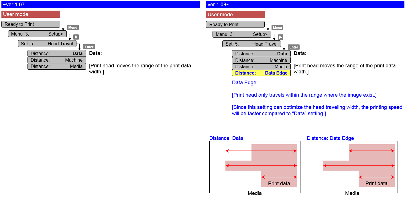 Print head travels up to the edge of print data. - Changed UV lamp operation during printing.