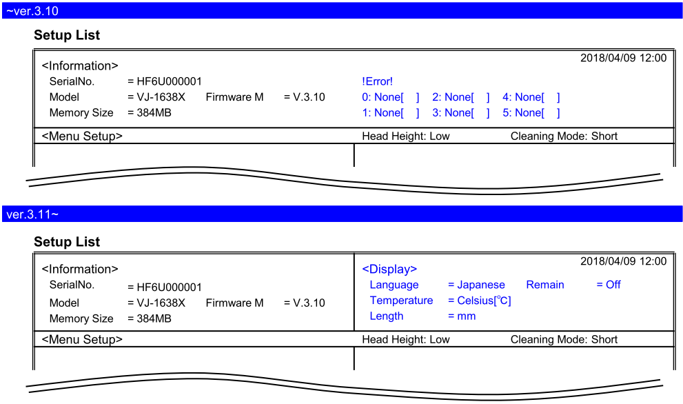 - Changed the error message when the waste ink tank is full from "No Waste Ink Tank" => "Full Waste Ink Tank"
