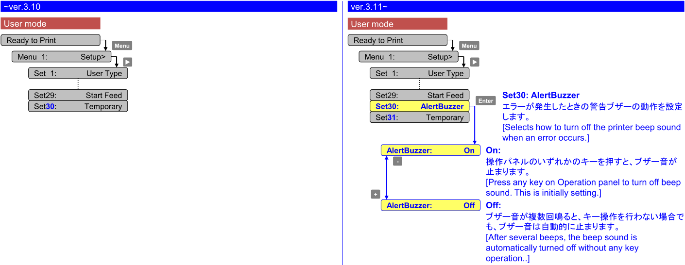 - Diagnostic mode: Added the menu to show the number of pages printed for each ink type