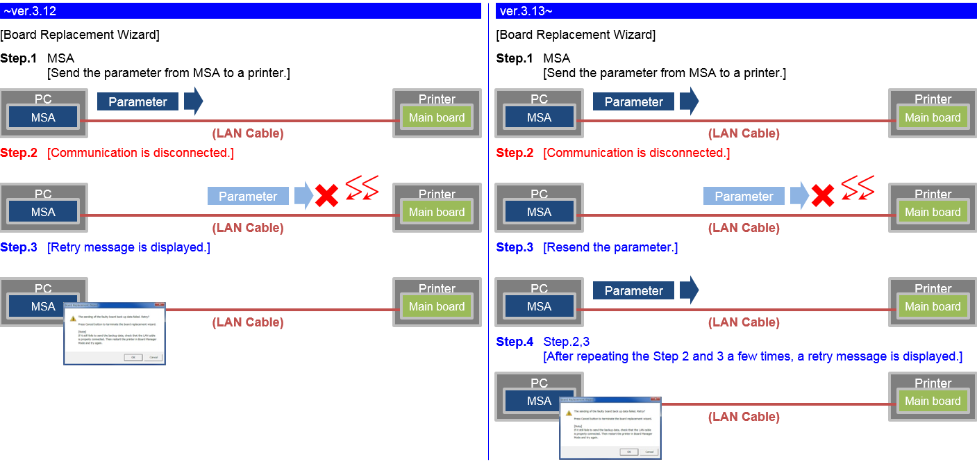 If the communication between MSA and the main board is cut off, MSA will automatically retry to send the parameter