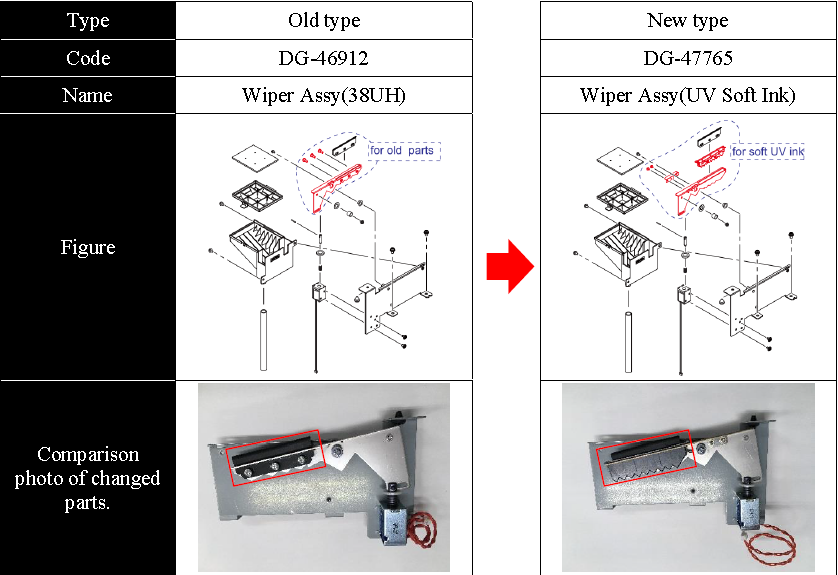 explanation listed below. Also, please inform the end-users about the new spare parts and replacement procedures. We prepared the new spare parts for units equipped with the old wiper.