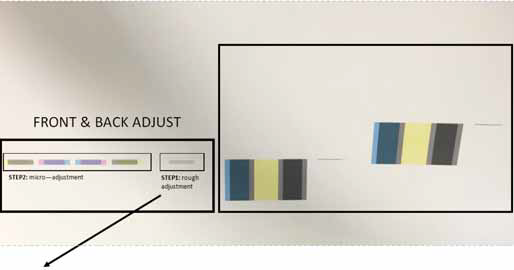 To quickly verify if the slant of both heads are “equally adjusted”, check the colour density of the 2 black patches (HEAD 1 and HEAD 2).Important