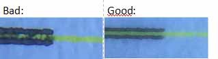 | BAD: The ink bleeds to much out. This affects accuracy of the mechanical adjustment | Good: Inks are not bleeding, making sharp, defined lines inside the pattern. This enables a more accurate mechanical adjustment |