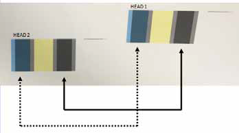 If both colour patches have exactly the same colour, it doesn’t always mean that they are properly adjusted! It’s just a quick test to compare that the slant of HEAD1 and HEAD 2 are similar.