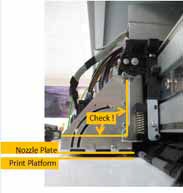 This alignment is set in the factory and should normally never be modified. Nevertheless, it’s recommended to verify the parallelism, prior to adjusting both print heads, to check if they were properly mounted on the carriage / print head bracket.