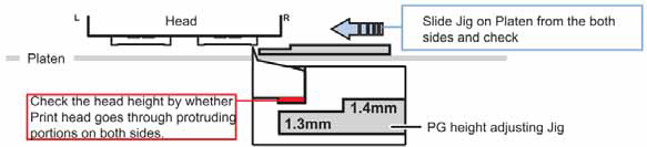 Both calibrations should not change during a head-replacement as they are fixed in the factory. So this check only needs to be verified together with the head-height calibration, after the print heads are properly adjusted. If you experience any issues while adjusting, especially pay attention to this.