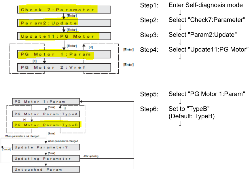 - Check 7: Parameter > Param2: Update > Update11: PG Motor > PG Motor 1: Param