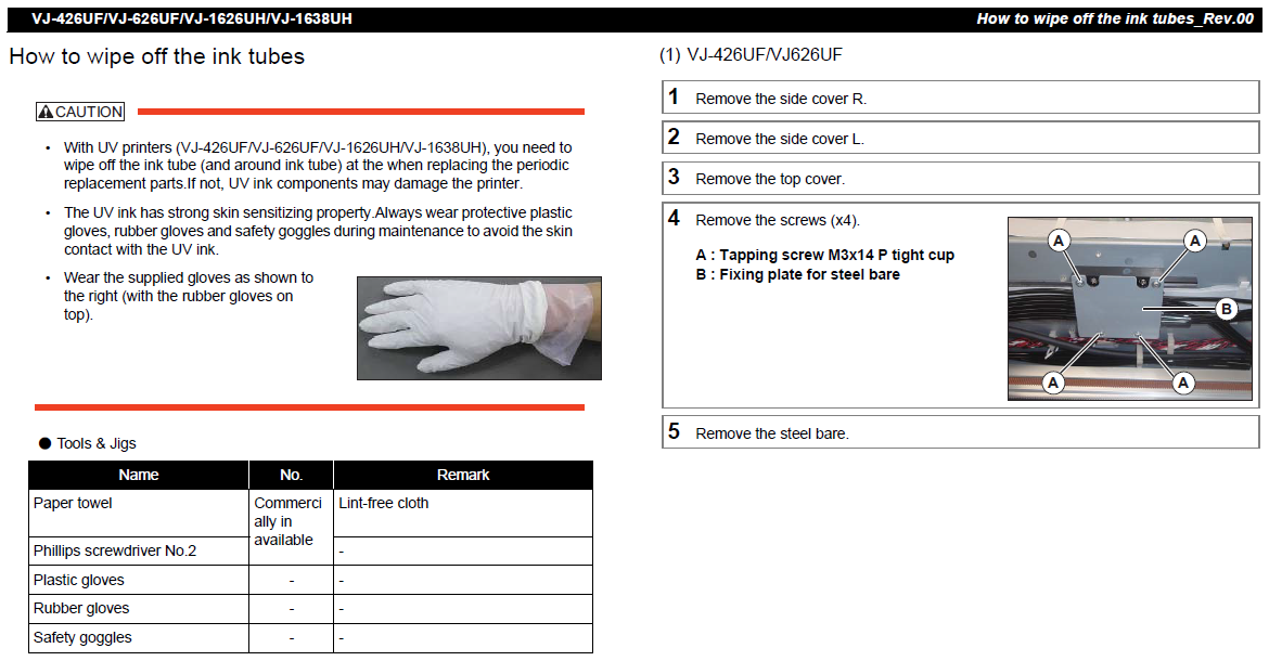 UV printers with following serial numbers have a 3-layer tubing installed.