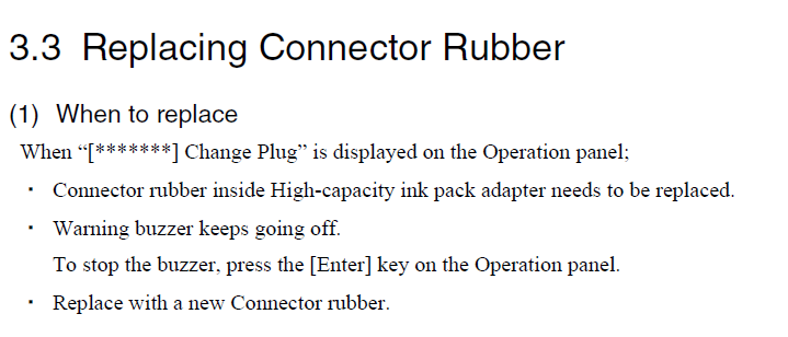 If you are about to replace the bung, ensure to use the correct part number for the correct ink-adapter pack & ink-kind! The correct numbers can be retrieved from the sparepart lists (downloadable from our website reseller zone: https://www.mutoh.eu).