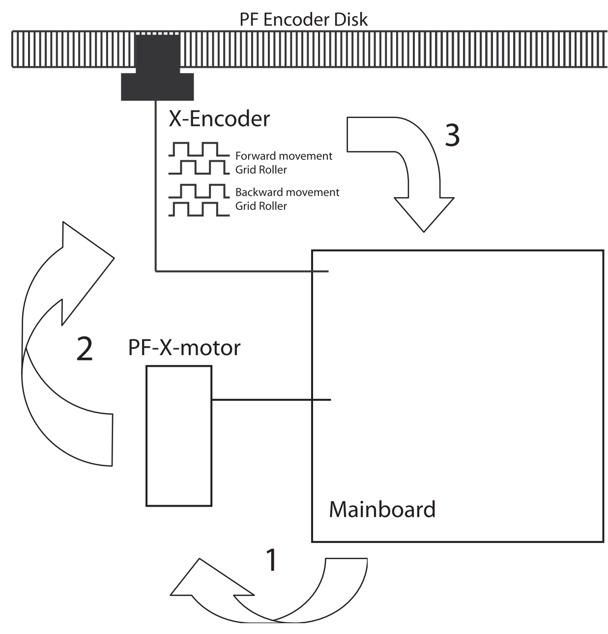 The CR motor control is a PID control (PID = proportional, integral, derivative controller) in a closed feedback loop in order to accurately control and position the carriage.