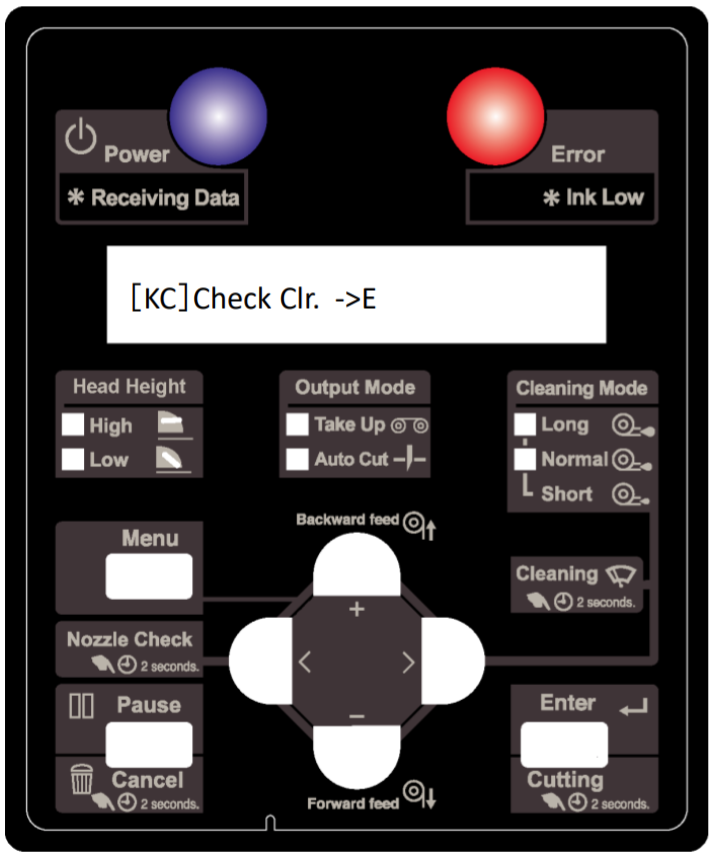 ... and the printer is unable to properly identify the ink color in a slot, the following message will now appear on the display. In this example-case below, it indicates that there is a problem with the reading of the black (K) and Cyan (C) cartridge chip: