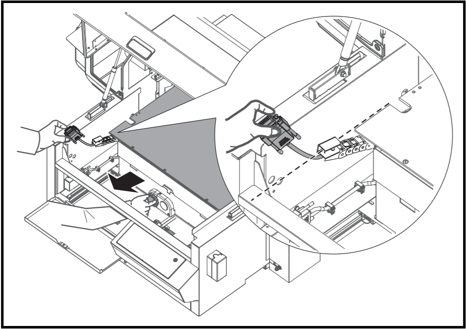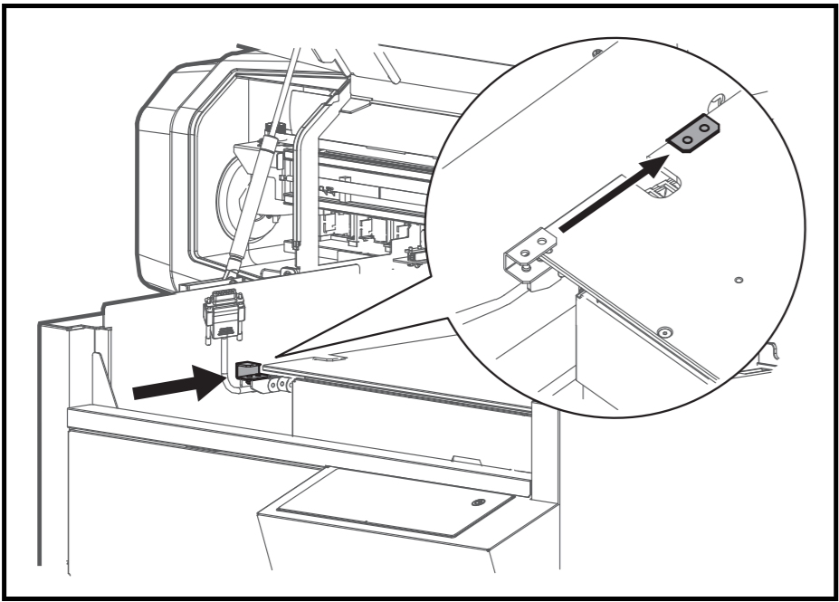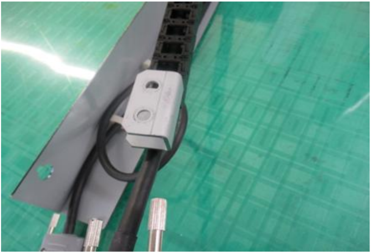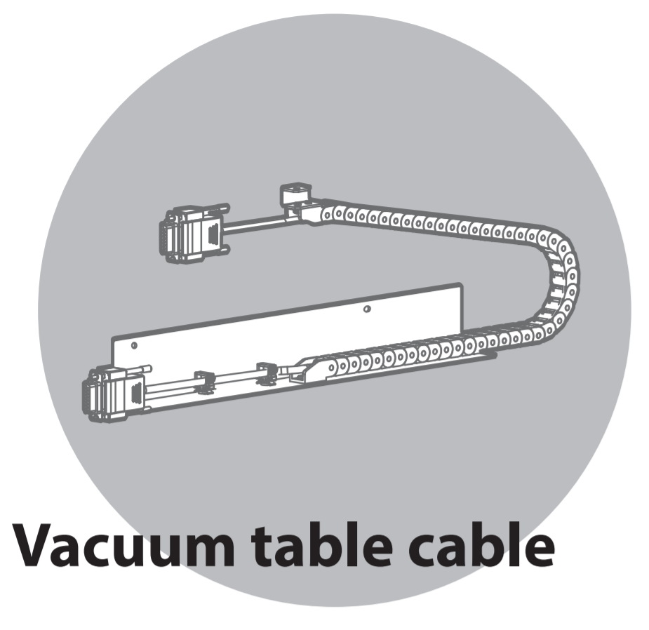 It may be possible that on some vacuum table units a bracket is not properly mounted. This bracket is attached on the chain of the optional vacuüm table cable: