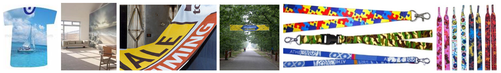 Transfer is possible onto all kinds of polyester fabrics and polyester coated materials such as banners, flags, pennants, prototypes, sports goods, gadgets, apparel, personalised interior décor, polyester coated ceramics, aluminium and tile murals, tradeshow and exhibition graphics, etc…