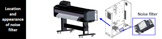 Note: this new noise filter cannot be installed on the printer produced before the above mentioned serial numbers