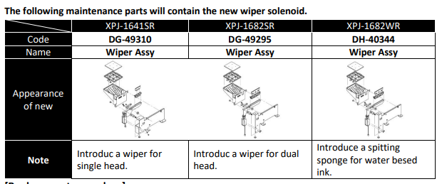 See technical bulletin TIB 832 - XPJ-1641SR & XPJ-1682SR Introduction of a new pump type for more details - Introduction of a new wiper solenoid