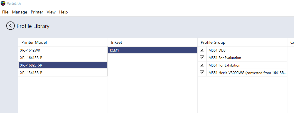 • Open the Profile Library from VerteLith's menu.