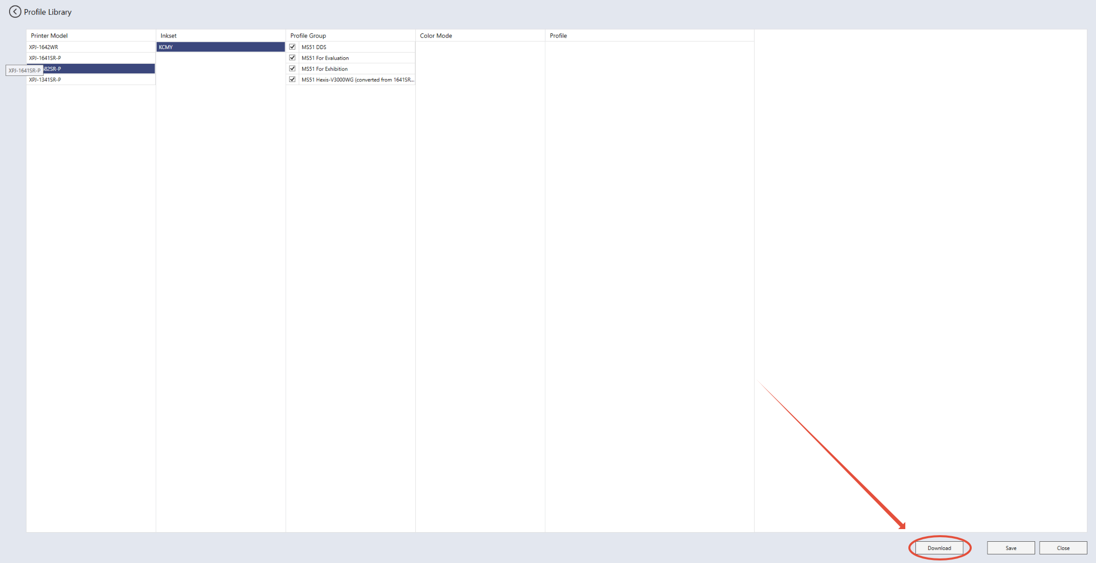 • In the Profile Library, in the lower right corner you'll find the DOWNLOAD button