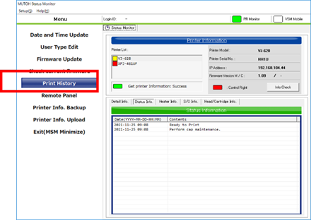 The MSM (as of version 8.1.1) allows to automatically export the Print History of the printer(s), which are being monitored.