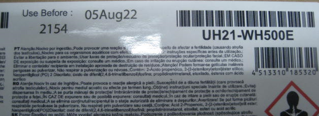 we have discovered that a minor quantity of UH21-WH500E ink packs have been shipped with a wrong "use before date" on the cardboard box in which the in pack is packed.