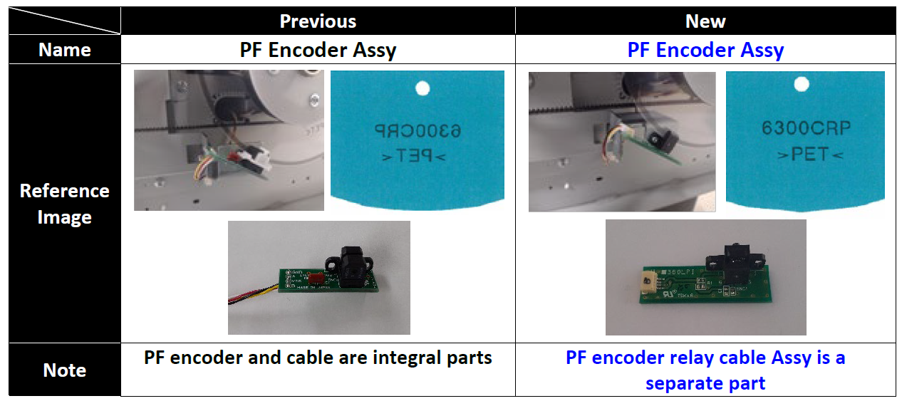 • The direction of the encoder light in the revised part is opposite to the previous version. As a result the the PF encoder scale should be installed in the opposite direction.