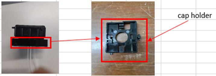 • Mount the new cap holder. Be sure to check that the claws of the cap holder are firmly inserted (easy to insert by using a flathead screwdriver or tweezers).