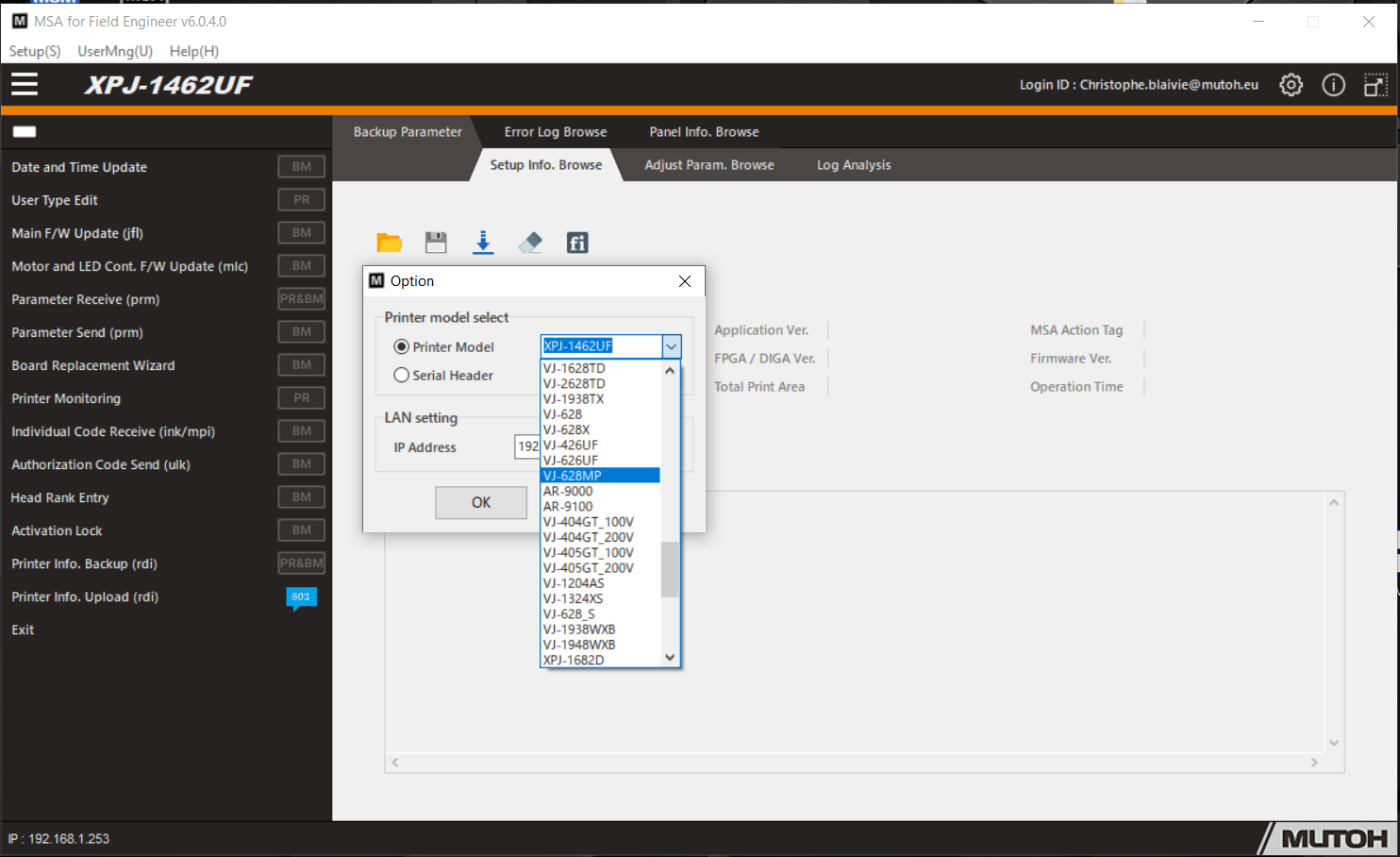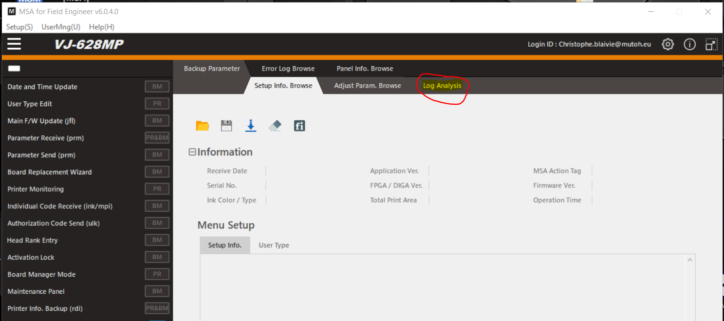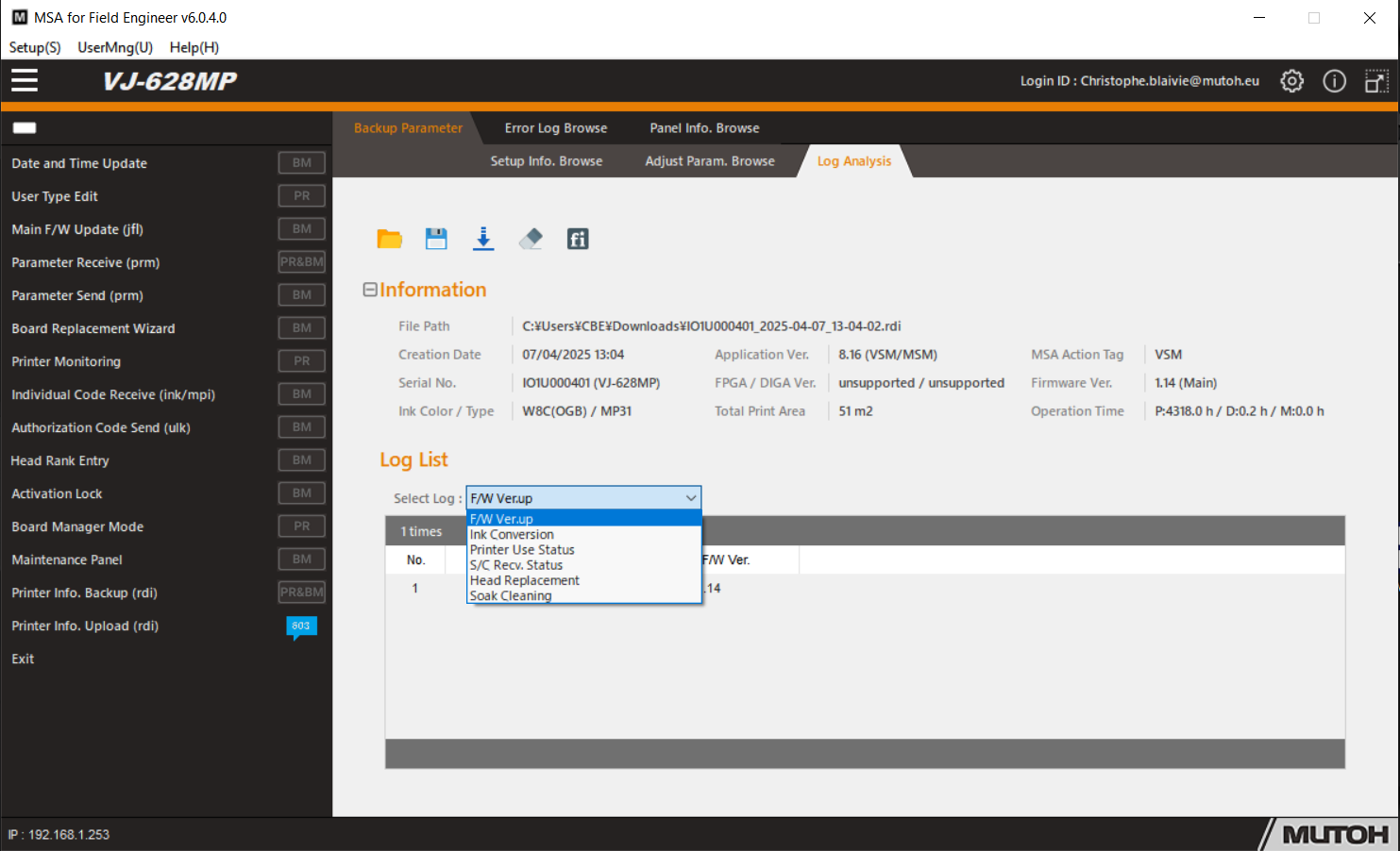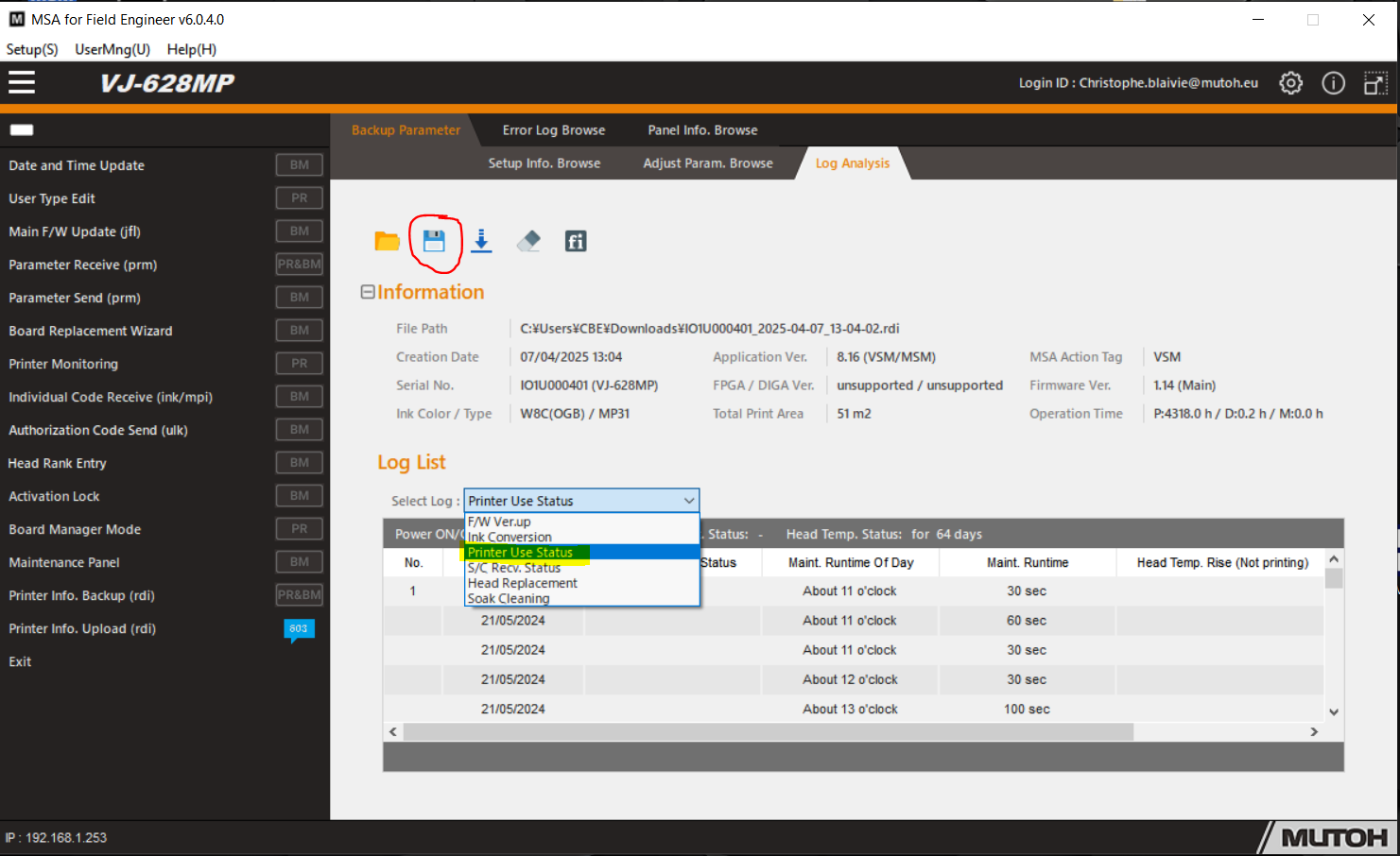 This data can be analysed by means of the MSA tool (there is no need to be connected to the printer).