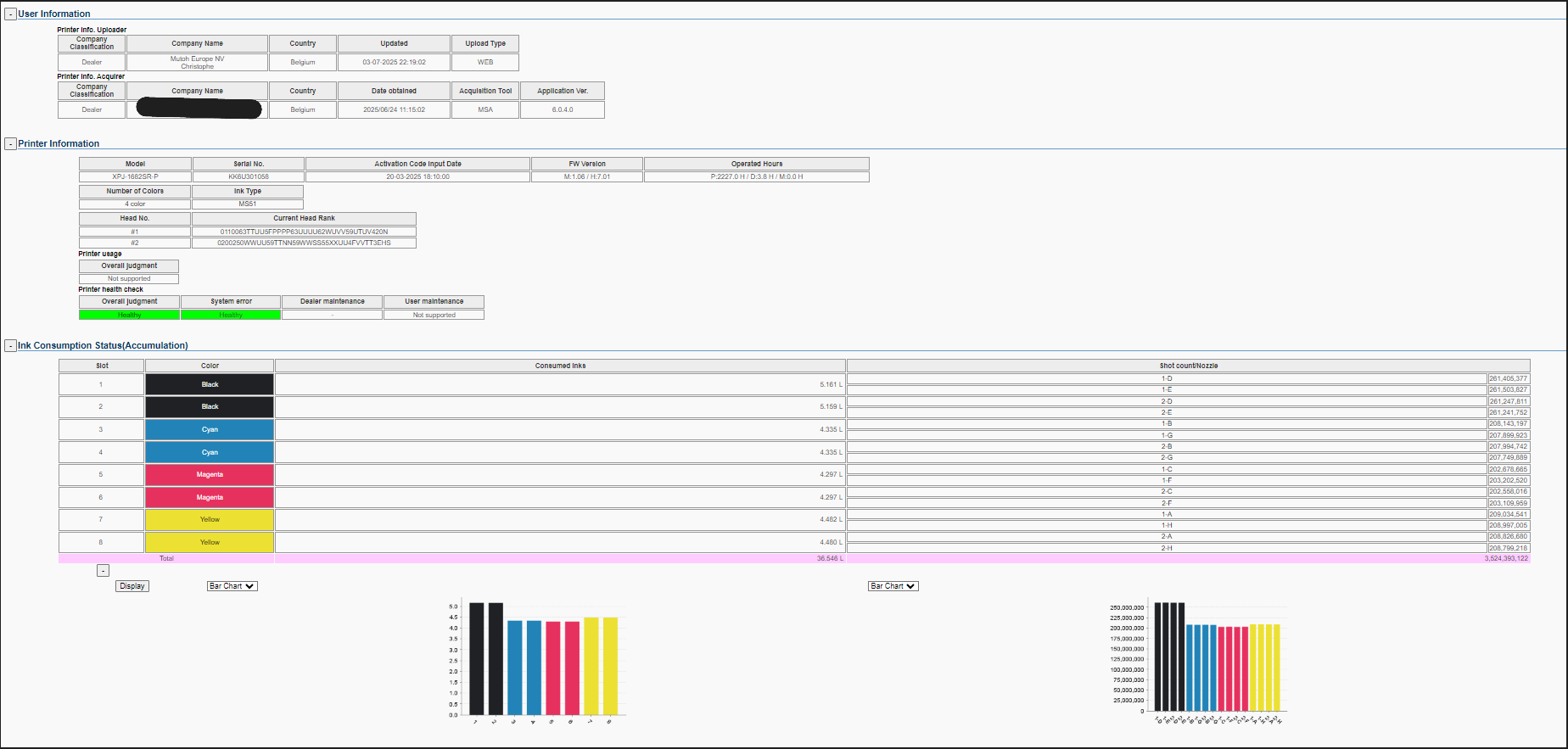 A very important parameter to check here is to see if the operator has performed the required maintenance. The frequency depends on the ink type and can be checked as explained in the movie of the MSA tool and/or in the article below.